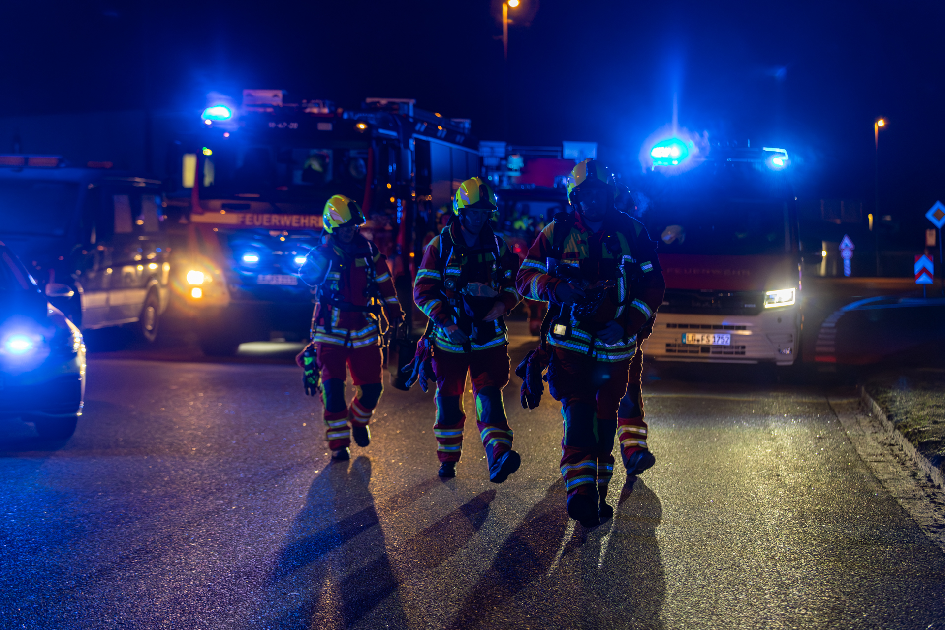 Einsatzleiter Daniel Roemer ließ kurzer Zeit später das Alarmstichwort erhöhen, wodurch weitere Kräfte aus den Feuerwehrhäusern Mitte und Süd zur Einsatzstelle alarmiert wurden.