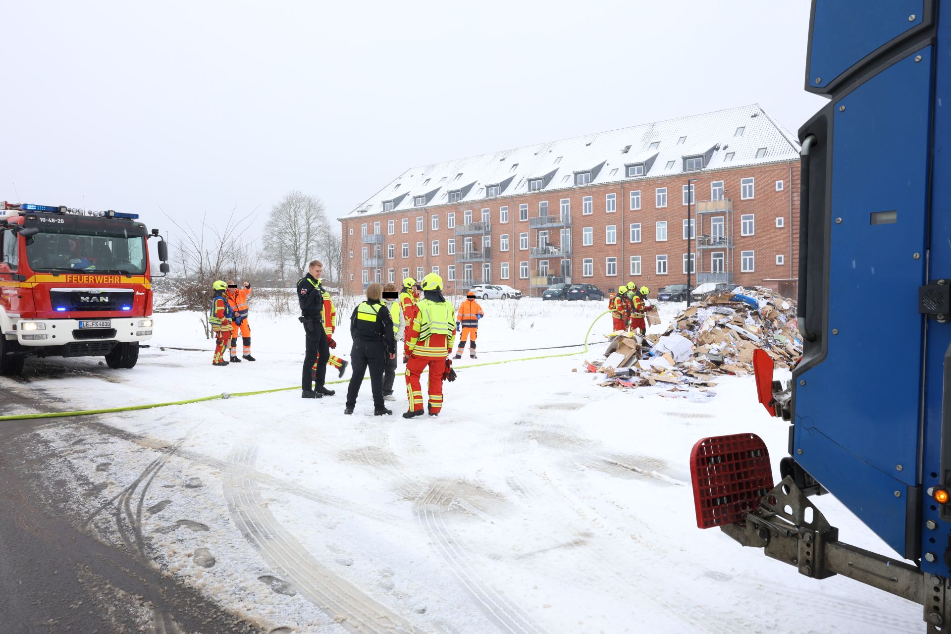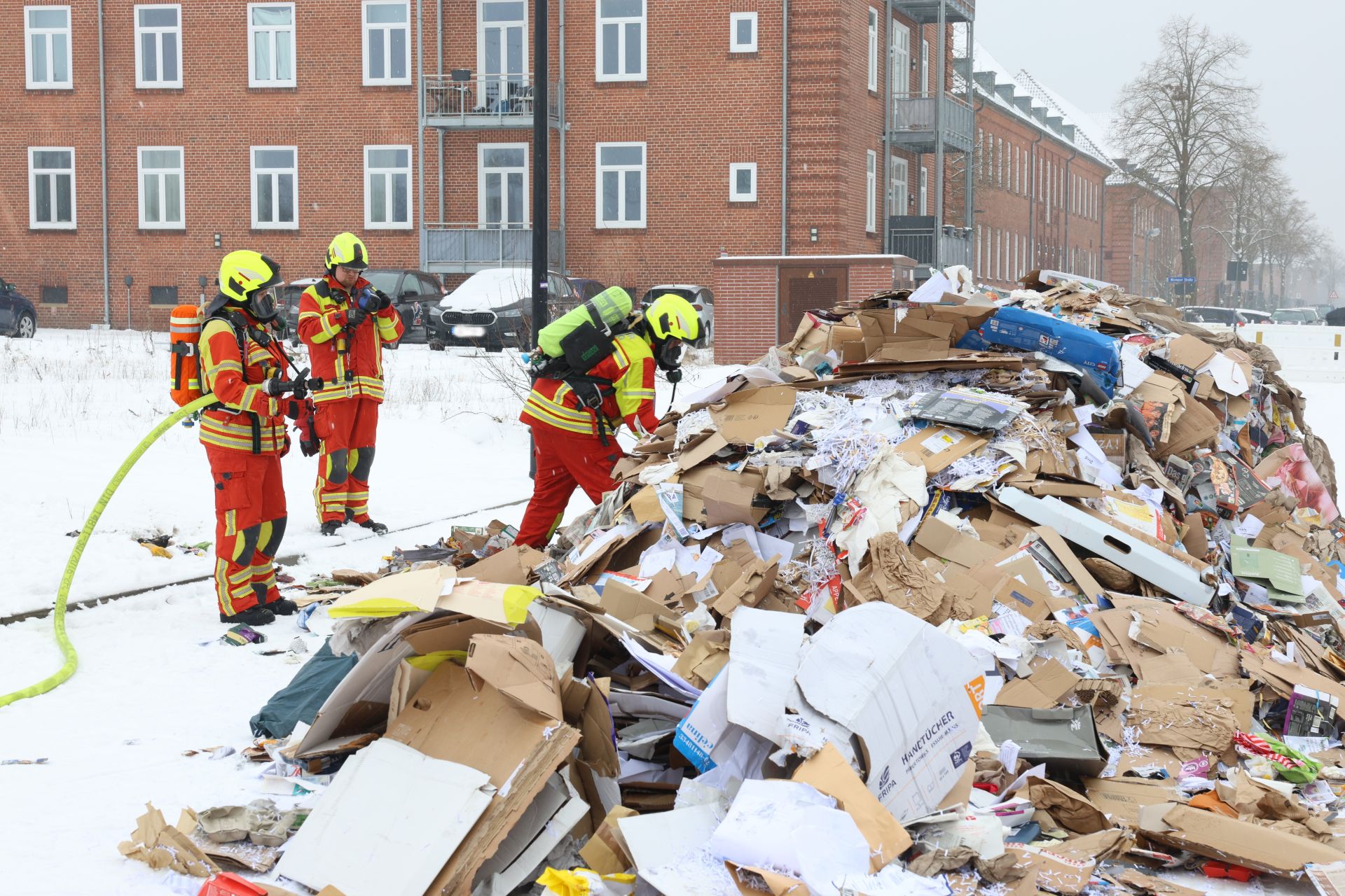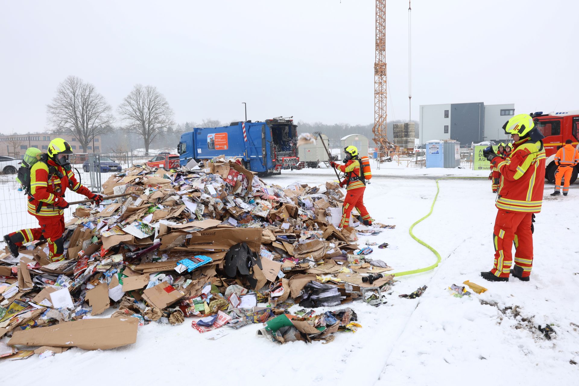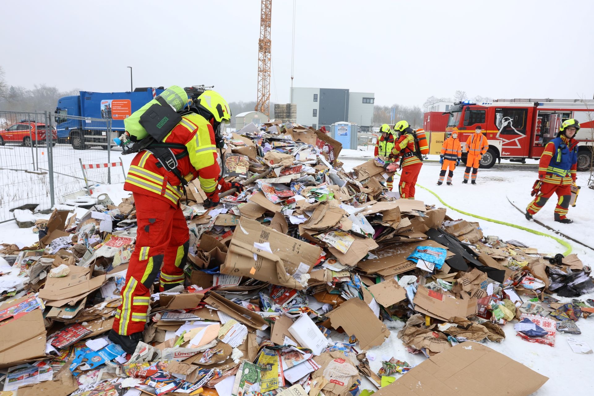 Die Feuerwehr konnte das Feuer zügig löschen. Einsatzleiter Markwardt konnte die nachfolgenden Fahrzeuge des Löschzuges beidrehen lassen, zur Brandbekämpfung reichte das angerückte HLF aus. Das Altpapier wurde teilweise umgeschichtet und mit einer Wärmebildkamera kontrolliert. Im Altpapier fanden sich fälschlich entsorgte und in Brand geratene Lithium-Ionen-Akkus.