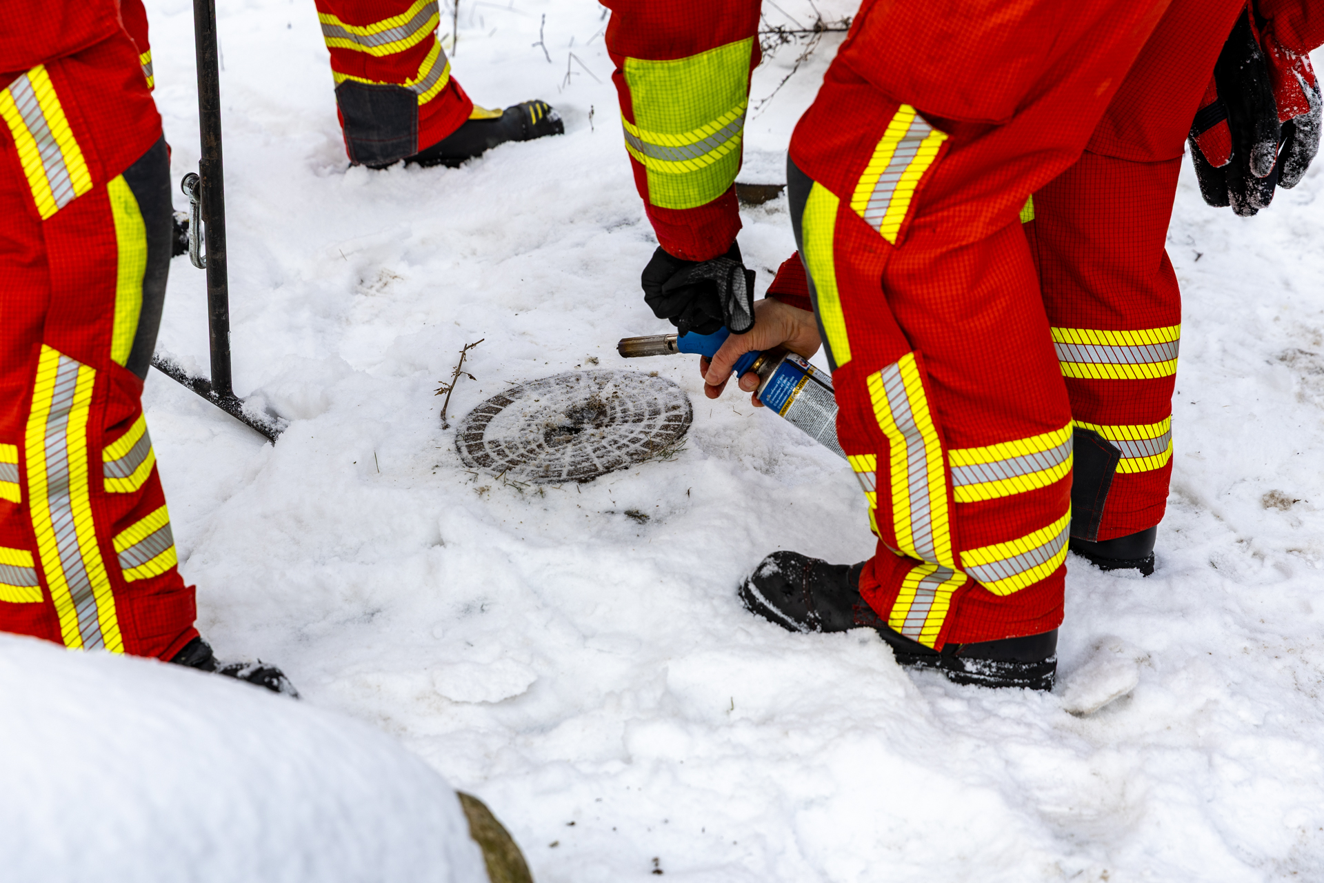 Aufgrund der niedrigen Temperaturen und den Schnee- und Eisresten konnten die Einsatzkräfte ausschließlich mit Löschwasser aus den Fahrzeugtanks arbeiten. Ein weiteres Löschfahrzeug speiste dabei das ersteintreffende Fahrzeug. Der nächste Unterflurhydrant war zugefroren was auch unter Einsatz eines Gasbrenners nicht gelöst werden konnte.